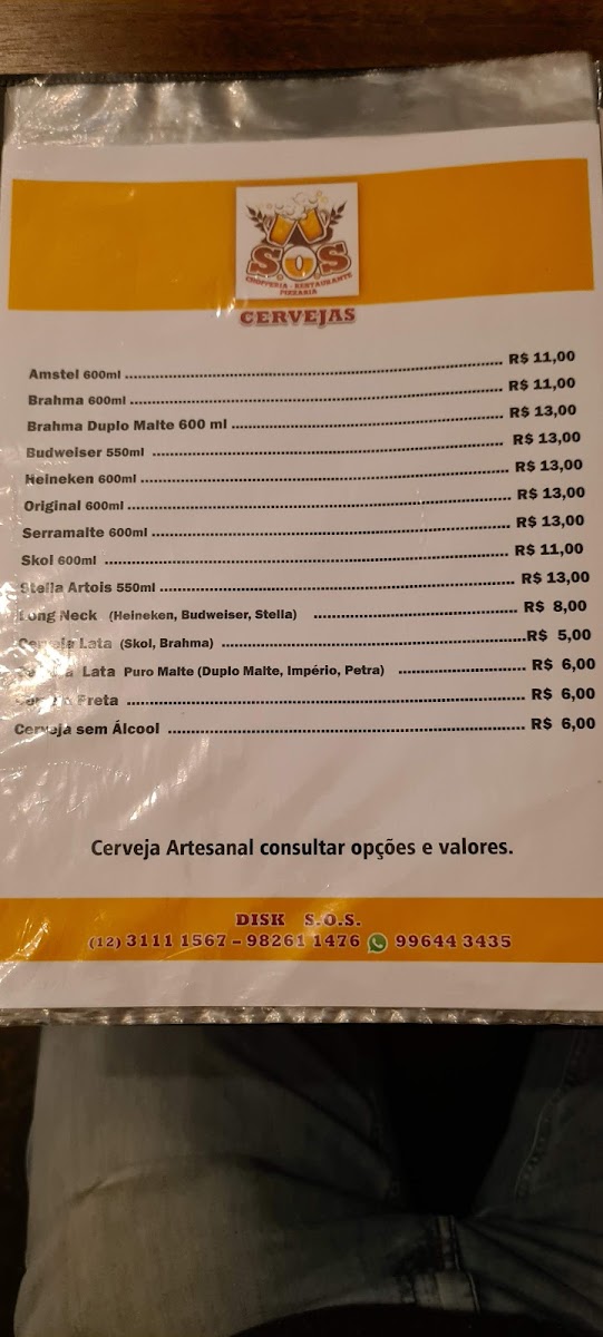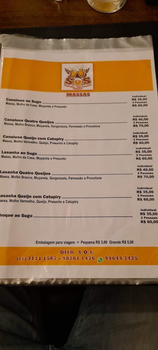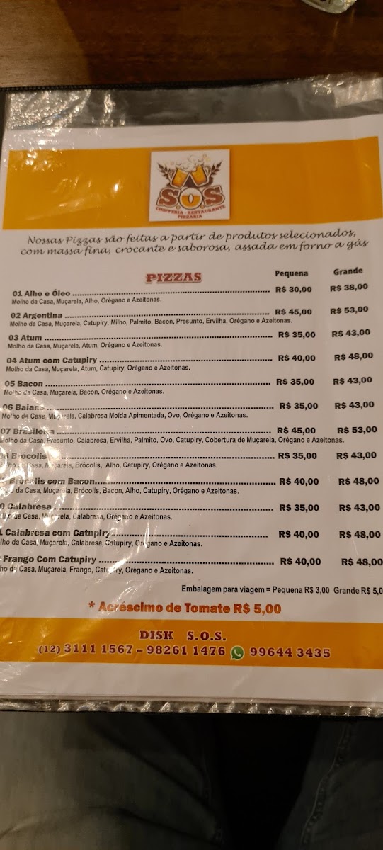 S.O.S. Chopperia, Restaurante e Pizzaria Menu